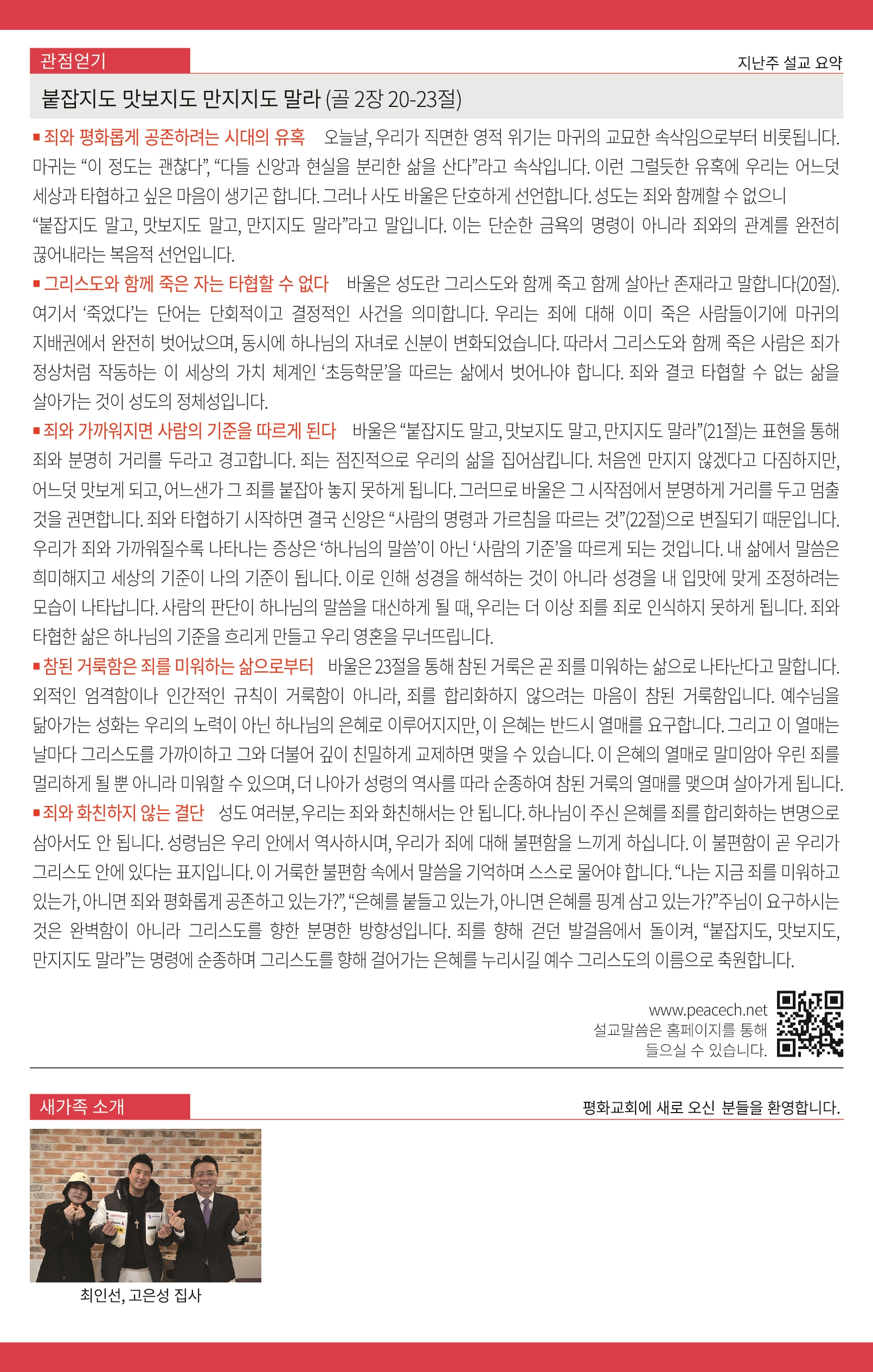 평화교회 / 교회소식 / 온라인주보